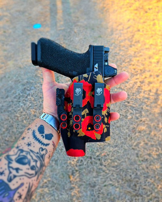 Our Hydra series of holsters are designed to add the extra rigidity and support needed for those heavier carry pieces, and is the perfect choice for those looking for maximum performance and quality. All mounting hardware is made from black oxide coated steel, giving maximum protection against rust caused by sweat. A set of 1.5 inch metal Discreet Carry Concepts HLR Mod 4 belt clips and Modwing are included as standard, allowing for the maximum amount of concealment and support. Additionally, EVERY holster comes with a mid height sweat guard, Red dot cut, and raised sight channel.