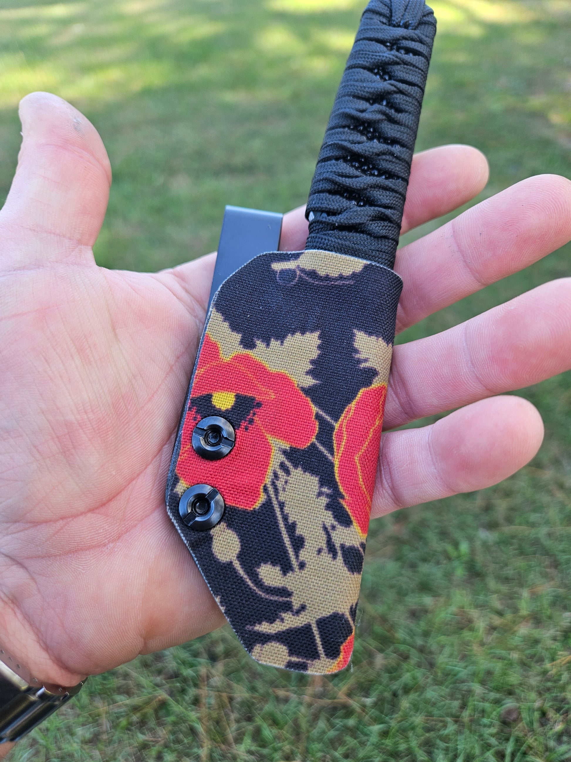 The cutting edge of the blade is 3.0 , 7.0 over all length, knife steel is CPM154 with a hardness of 60-62 rockwell. The blade comes with black ray skin wrapped in black cord. The sheath color can be selected to your choosing and comes with a deep carry DCC HLR clip. Blades are handmade by Fernando Medina so every one is slightly different!